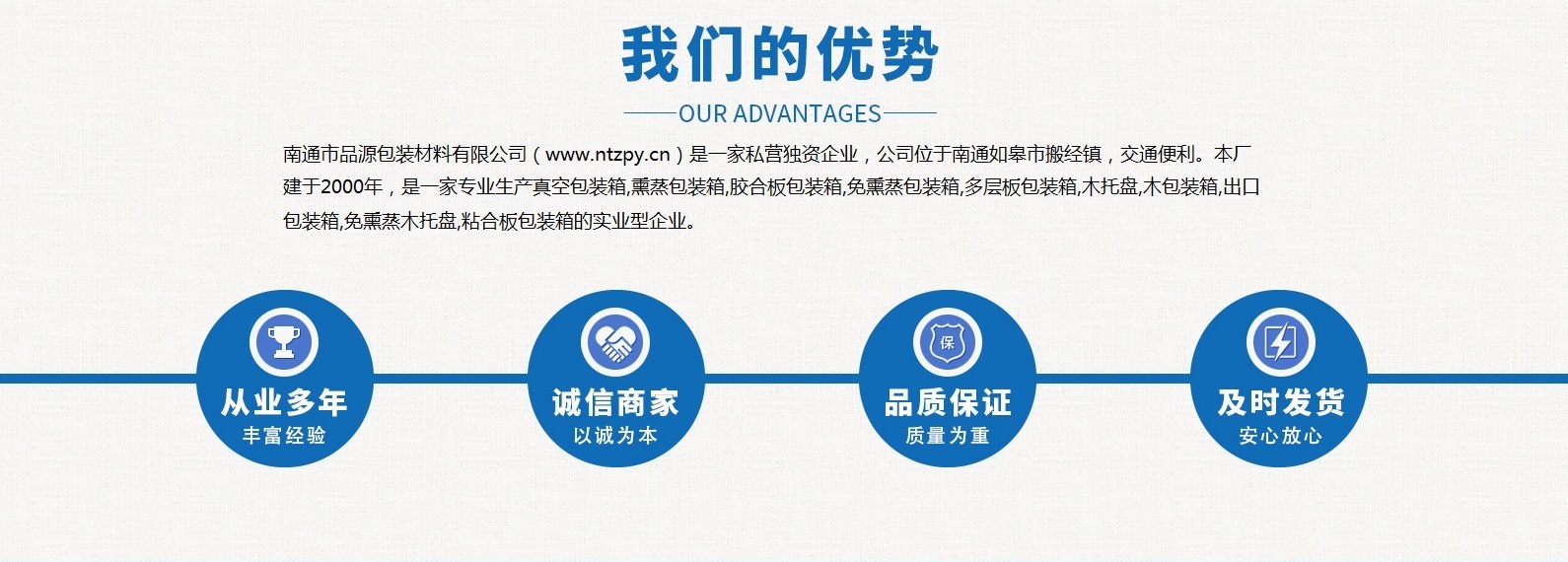 南通市品源包裝材料有限公司(www.xinshidai98.com)是一家私營(yíng)獨(dú)資企業(yè),公司位于南通如皋市搬經(jīng)鎮(zhèn),交通便利。本廠(chǎng)建于2000年,是一家專(zhuān)業(yè)生產(chǎn)真空包裝箱,熏蒸包裝箱,膠合板包裝箱,免熏蒸包裝箱,多層板包裝箱,木托盤(pán),木包裝箱,出口包裝箱,免熏蒸木托盤(pán),粘合板包裝箱的實(shí)業(yè)型企業(yè)。